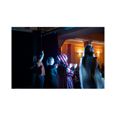 Devant la salle, l'un de nos meilleurs food trucks locaux: Meltin'Pates. À l'intérieur, bar. Avec un peu de comédie, tout ce qu'il faut pour passer une bonne soirée !